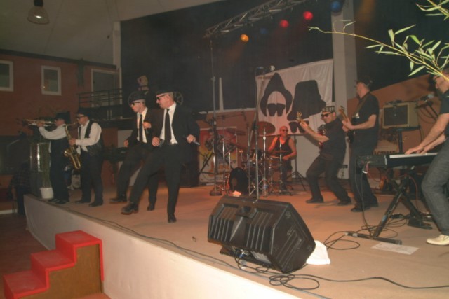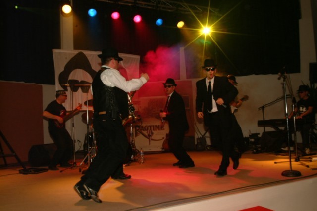 Conviés dès le début de soirée, pour partager un buffet dinatoire haut en couleurs et en saveurs, avec champagne à volonté, suivi du traditionnel discours d’inauguration, les participants ont vite exprimé leur bien-être en swinguant au rythme du Blues Brothers Show, un spectacle-marathon d’1H30. Les frères Gratereau (qui incarnent les Blues Brothers, comme dans « Le » film… mythique !) et leurs six musiciens ont su garder le public en haleine ; une fois sur la piste, plus question de faire une pause, d’ailleurs les danseurs n’y songeaient même pas, ils enchaînaient Rock’n Roll et Madisson sans sourciller.